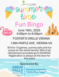 Join us at Foster’s Grille – Vienna (138-A Maple Rd., Vienna VA 22180) for a summer themed Bingo.